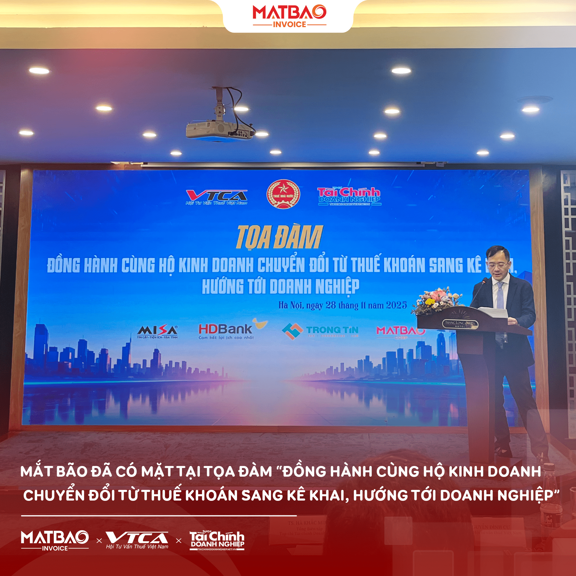 Matbao-invoice xin gửi lời cảm ơn chân thành đến Tạp chí Tài chính Doanh nghiệp và Hội Tư vấn Thuế Việt Nam (VTCA) đã tạo ra một diễn đàn ý nghĩa. Sự kiện không chỉ giúp lan tỏa những giá trị Pháp lý chuẩn mực mà còn mang đến những giải pháp Công nghệ thiết thực, đồng hành cùng Hộ kinh doanh vững bước trên lộ trình phát triển.