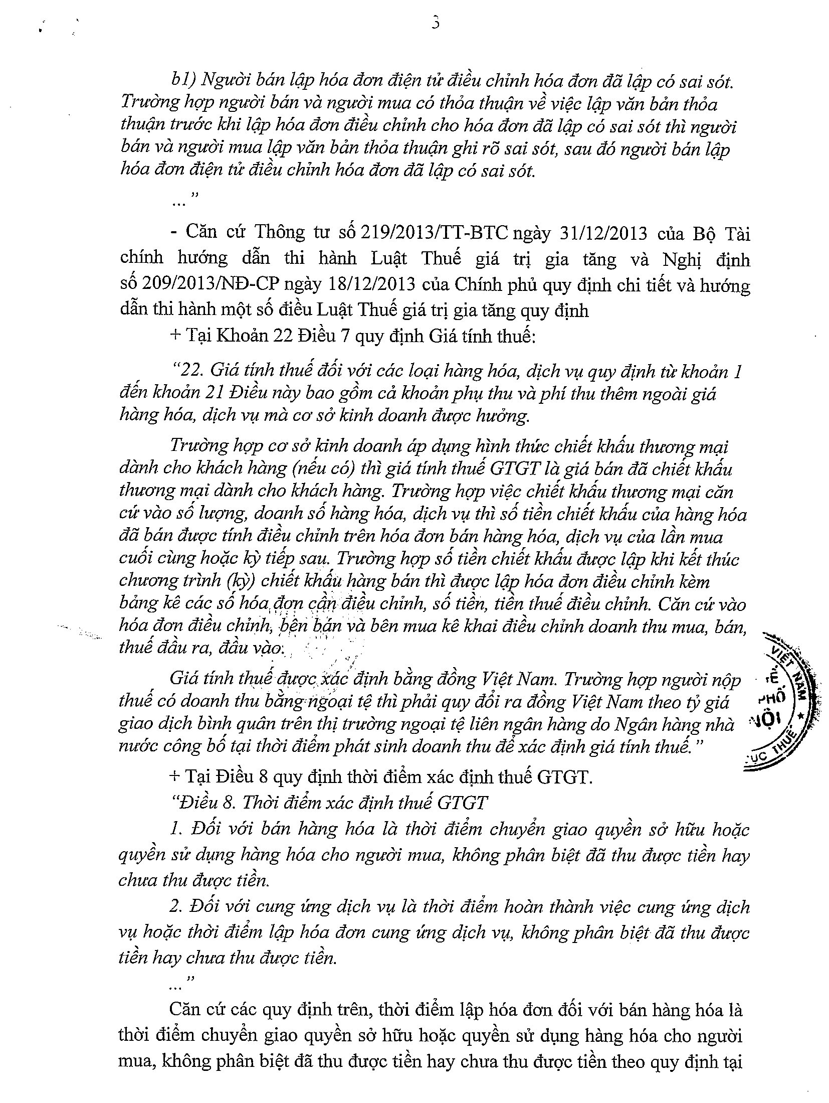 Trường hợp cơ sở kinh doanh áp dụng hình thức chiết khấu thương mại dành cho khách hàng (nếu có) thì giá tính thuế GTGT là giá bán đã chiết khấu thương mại dành cho khách hàng. Trường hợp việc chiết khấu thương mại căn cứ vào số lượng, doanh số hàng hóa, dịch vụ thì số tiền chiết khấu của hàng hóa đã bán được tính điều chỉnh trên hóa đơn bán hàng hóa, dịch vụ của lần mua cuối cung hoặc kỳ tiếp sau. Trường hợp số tiền chiết khấu được lập khi kết thúc chương trình (kỳ) chiết khấu hàng bán thì được lập hóa đơn điều chỉnh kèm bảng kê các số hóa đợn cần điều chỉnh, số tiền, tiền thuế điều chỉnh. Căn cứ vào hóa đơn điều chỉnh, bên bán và bên mua kê khai điều chỉnh doanh thu mua, bán, thuế đầu ra, đầu vào.