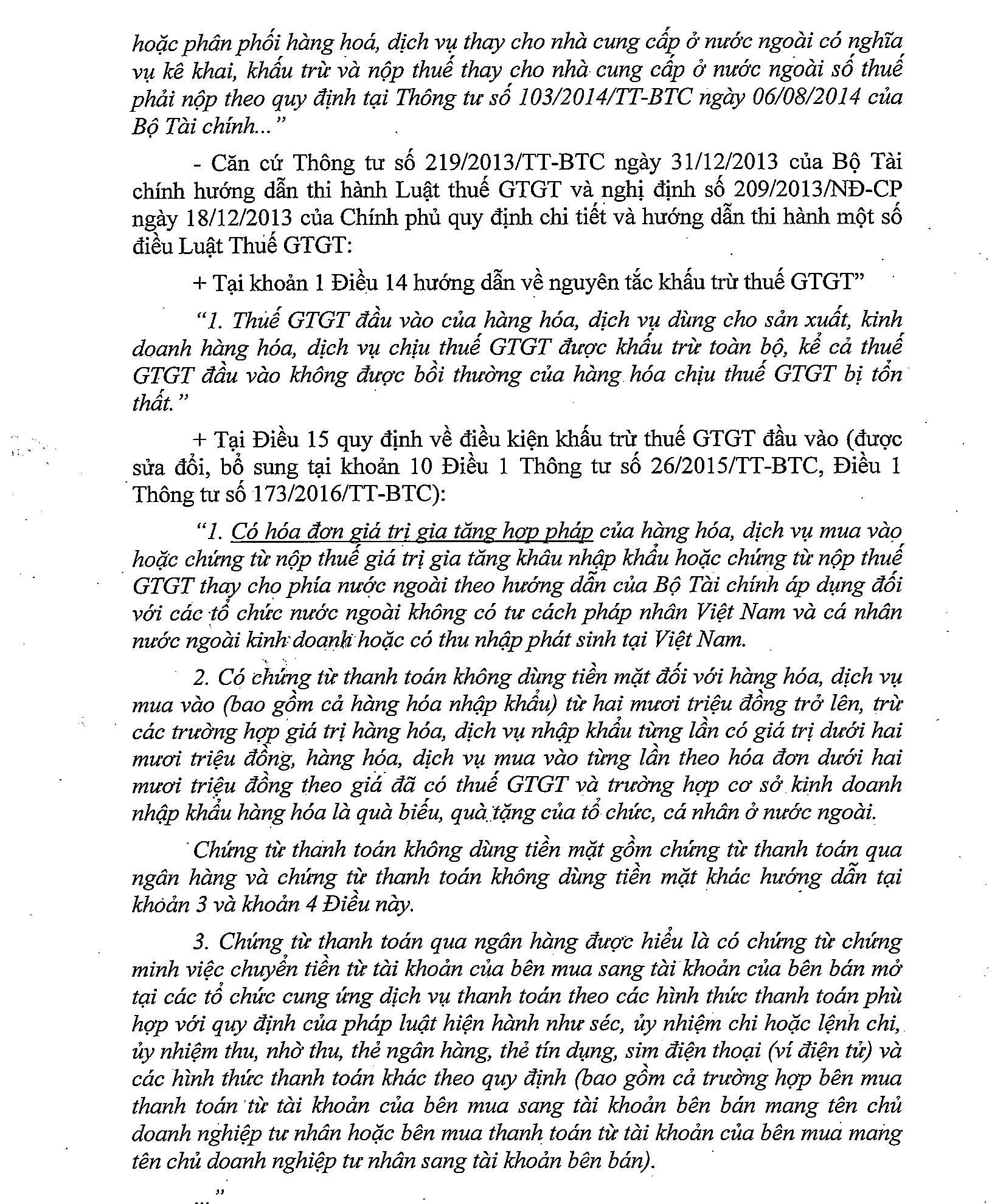 – Căn cứ Thông tư số 219/2013/TT-BTC ngày 31/12/2013 của Bộ Tài chính hướng dẫn thi hành Luật thuế GTGT và nghị định số 209/2013/NĐ-CP ngày 18/12/2013 của Chính phủ quy định chi tiết và hướng dẫn thi hành một số điều Luật Thuế GTGT: