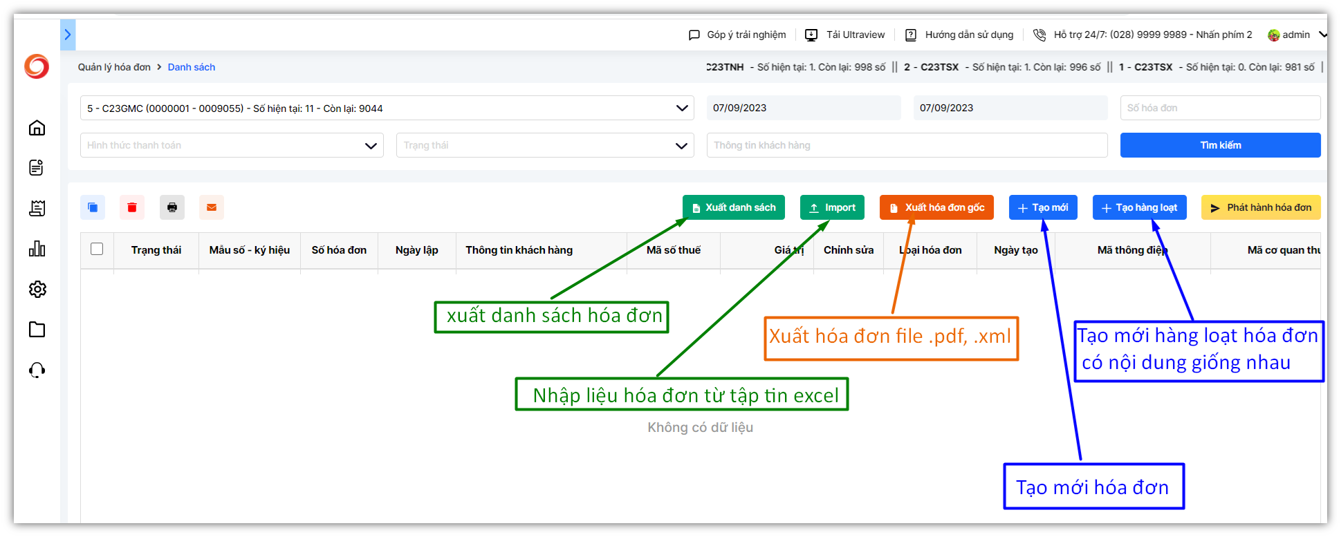 - Xuất danh sách: xuất bảng dữ liệu danh sách hóa đơn đã phát hành, hóa đơn nháp