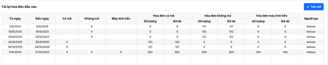 Hệ thống sẽ xử lý và tải lại, đồng thời bỏ trùng đối với hóa đơn đã được tải trước đó.