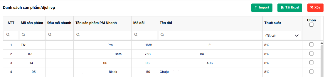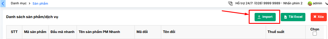 Lưu ý: nhập đúng thông tin thuế suất của sản phẩm nếu có nhu cầu lấy thuế suất theo file import.