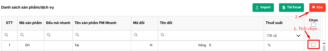 Trên màn hình danh sách sản phẩm, bạn có thể tham khảo thêm 2 chức năng bên dưới:
