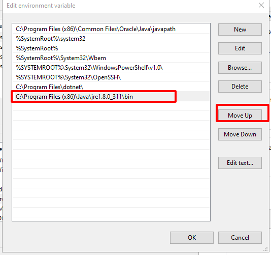 Tiếp theo, thêm đường dẫn của phần mềm Java và di chuyển lên phí trên đầu tiên để được ưu tiên.