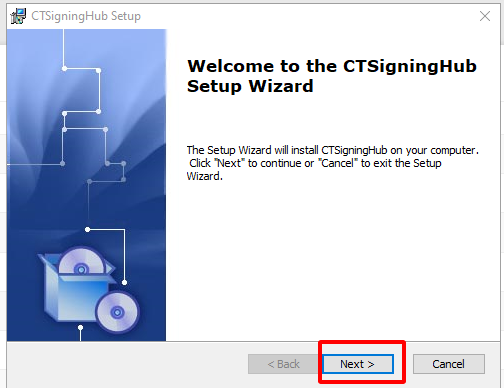 - Màn hình Welcome to the CTSigningHub Setup Wizard xuất hiện→ Nhấn Next để tiếp tục.