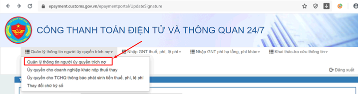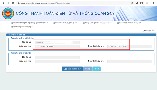 Hướng dẫn cập nhật chữ ký số trên Cổng thanh toán điện tử và thông quan 24/7