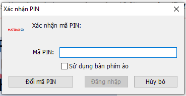 Khi hệ thống thực hiện ký, Doanh nghiệp có thể cần phải nhập mã PIN (PIN code) để có thể thực hiện ký số. Giao diện nhập mã PIN phụ thuộc vào nhà cung cập thiết bị USB Token, ví dụ như hình sau: