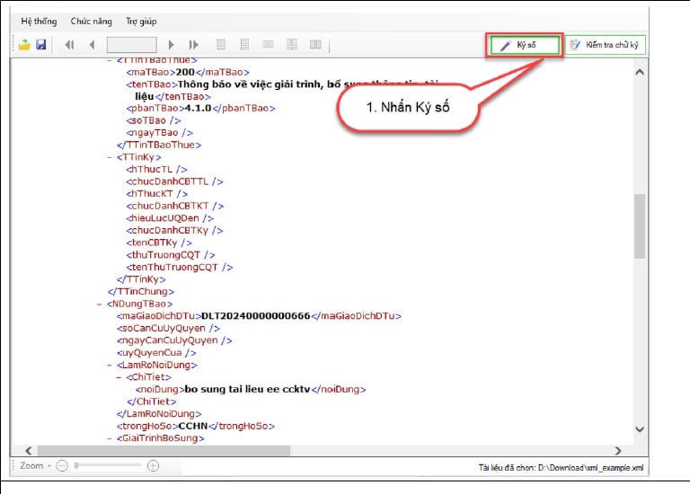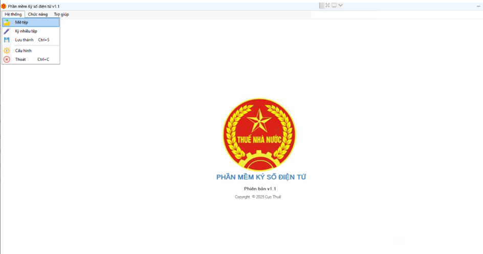- Ở tính năng Hệ thống , chọn lệnh Mở tệp để thực hiện ký số file XML đã tải.