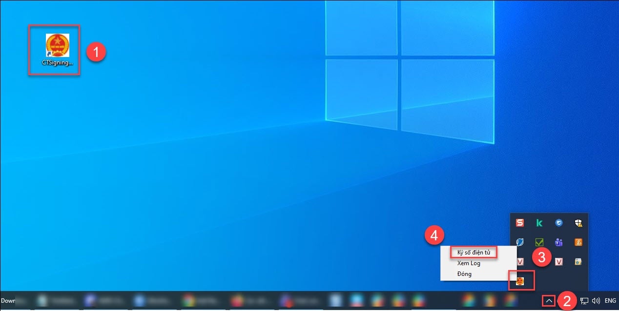 - Nháy chuột phải vào biểu tượng phần mềm ký số ở góc dưới cùng bên phải, chọn Ký số điện tử