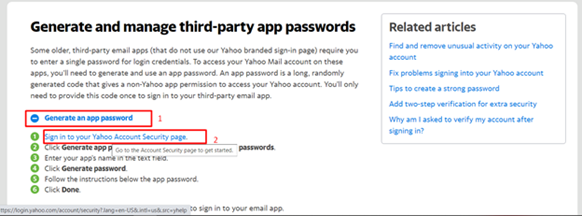 Khi đó hệ thống sẽ yêu cầu bạn đăng nhập tài khoản Yahoo mail và thiết lập mật khẩu. Tick vào mục Generate an app password