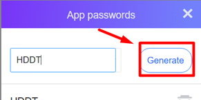 Bạn đặt tên cho ứng dụng( ví dụ: HDDT ), nhấn Generate để hệ thống lập mật khẩu ứng dụng