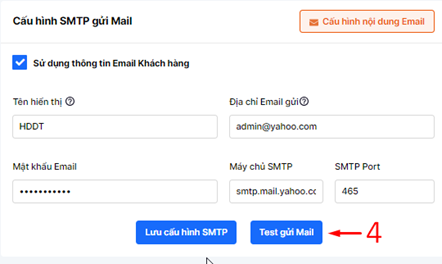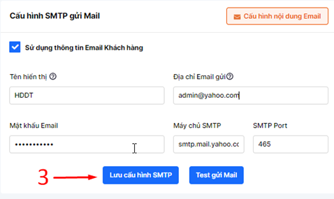 Sau khi thiết lập thông tin cấu hình SMTP gửi mail, bạn nhấn Lưu cấu hình SMTP.