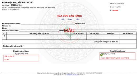 Hóa đơn đỏ trong bệnh viện bao gồm thông tin như: