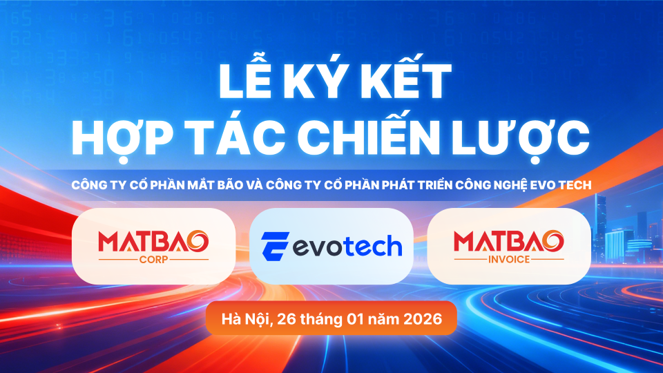 Chiều ngày 26/01/2026, tại Hà Nội, Công ty Cổ phần Mắt Bão (bao gồm Mắt Bão và Matbao-invoice) đã chính thức ký kết thỏa thuận hợp tác chiến lược với Công ty Cổ phần Công nghệ Evotech. Sự kiện đánh dấu cột mốc quan trọng trong việc cộng hưởng sức mạnh hạ tầng, công nghệ AI và giải pháp tăng trưởng, mang đến lợi thế cạnh tranh vượt trội cho cộng đồng doanh nghiệp Việt trong kỷ nguyên số.