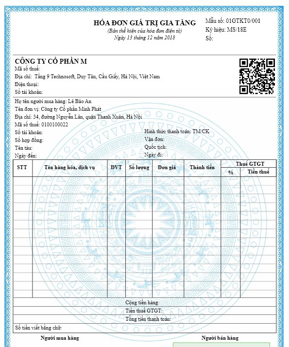 9+ Mẫu hóa đơn điện tử từng lĩnh vực ngành nghề theo Thông tư 68