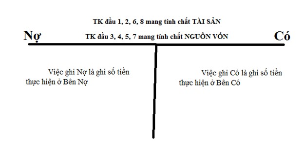 - Các tài khoản loại 1; 2; 6; 8 là tài khoản mang tính chất TÀI SẢN. Khi phát sinh tăng, bạn ghi bên Nợ và ngược lại, phát sinh giảm thì ghi bên Có.