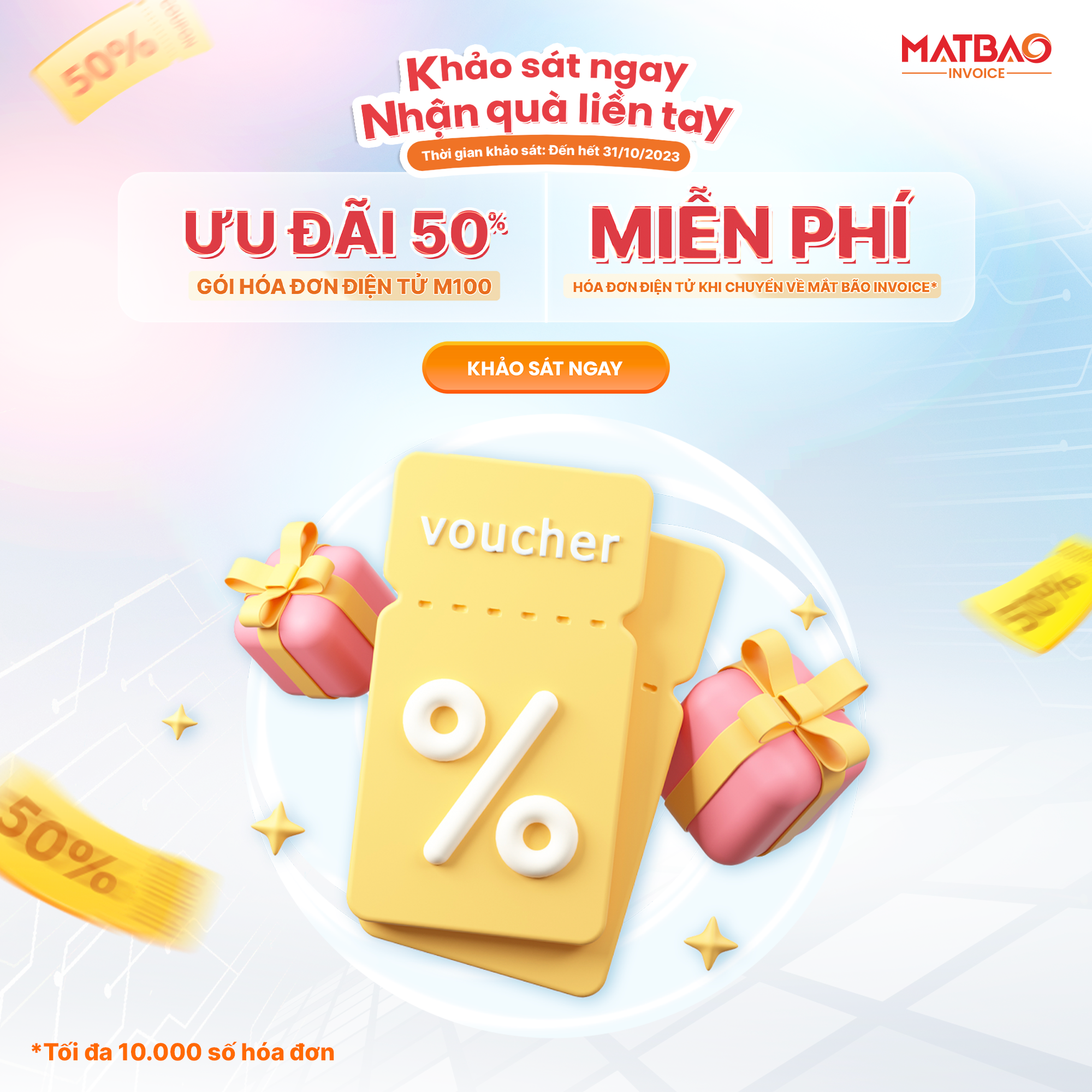 - Giảm 50% gói hoá đơn điện tử M100.